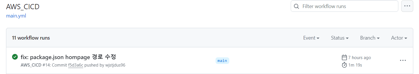 이제 main 브랜치에 push하면 빌드와 배포가 자동으로 이루어진 결과를 확인할 수 있다.
