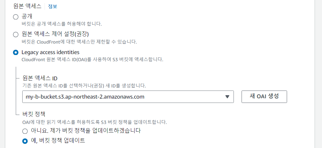 새 OAI 생성을 눌러 원본 액세스 ID를 만든다.