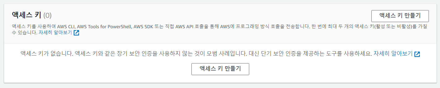 액세스 키 만들기 버튼을 클릭한다.