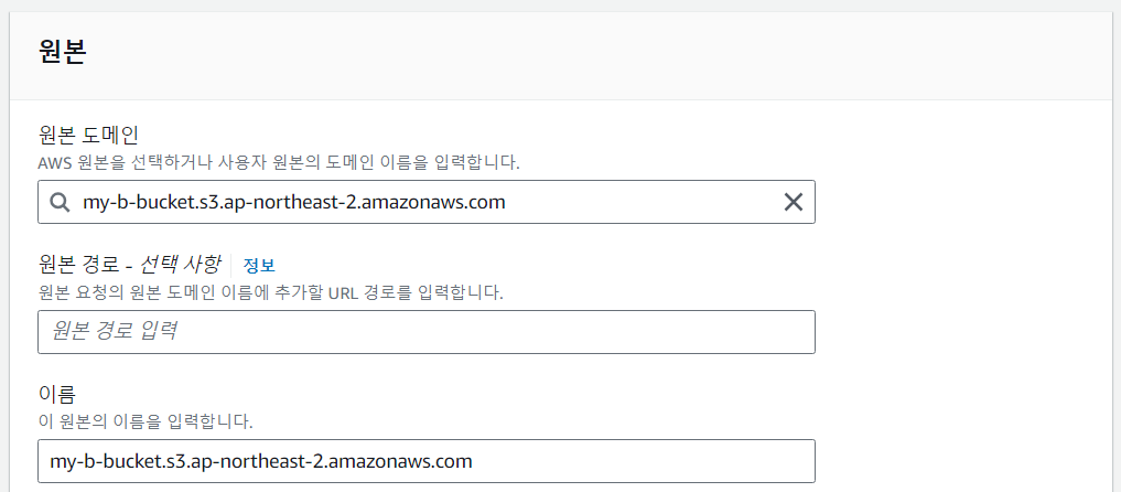 생성한 버킷 이름의 원본 도메인을 선택한다.