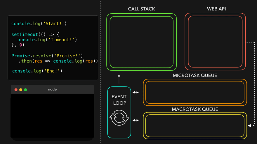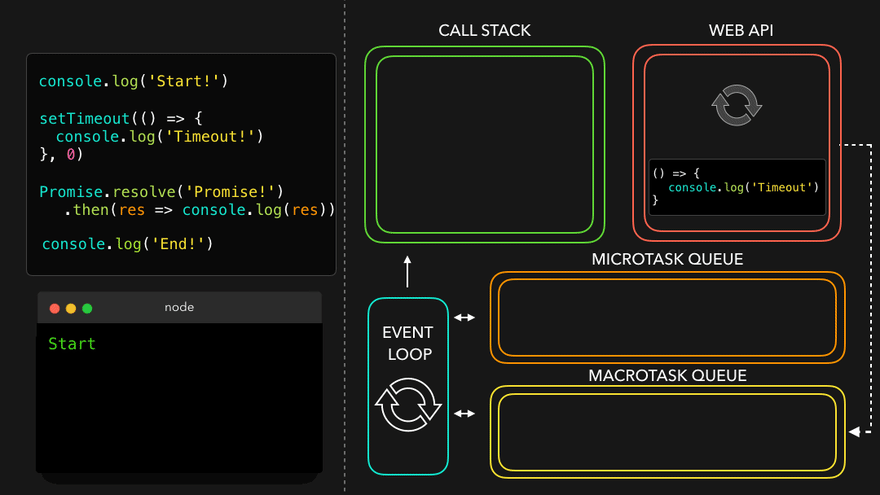 이때 종류에 따라 이벤트 루프가 콜스택으로 옮기는 순서가 달라진다. 일반적으로 MicroTask Queue의 콜백을 먼저 옮긴 뒤 Task Queue를 처리한다.