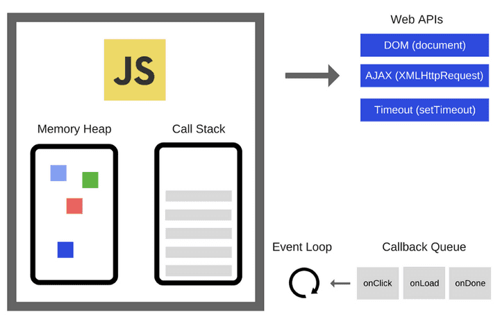 콜 스택에서 실행된 비동기 함수는 Web API를 통해 호출되고 Web API는 콜백 함수를 콜백 큐에 푸시한다.