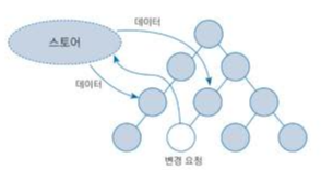 리덕스는 데이터를 스토어(store)라는 곳에서 관리한다. 스토어를 통해 데이터가 전파되고 컴포넌트는 스토어에 데이터 변경을 요청한다.