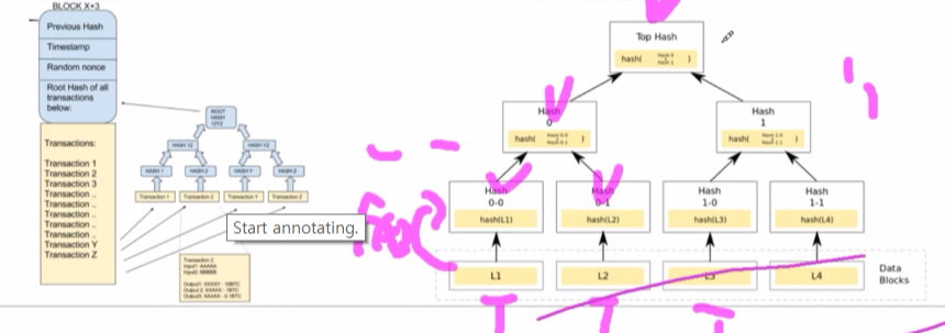 트랜잭션의 해시값을 각각 내고 최종적으로 Top Hash 값을 비교하여 트랜잭션의 무결성 보장