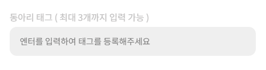 태그를 입력한 뒤 엔터를 누르면 등록되는 방식으로 구현하였다.